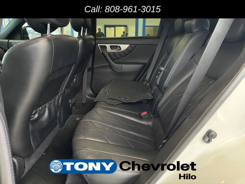 Discover the exceptional 2015 INFINITI QX70 Base, a sophisticated and dynamic crossover that blends style, performance, and advanced technology. This stunning vehicle is a true embodiment of INFINITI's commitment to craftsmanship and innovation, offering an unparalleled driving experience.Boasting a striking exterior in a sleek White color, the QX70 Base commands attention with its bold, sculpted lines and elegant design cues. Beneath the hood, the powerful 3.7L V6 DOHC 24V engine, paired with a smooth 7-Speed Automatic transmission and Rear-Wheel Drive, delivers an exhilarating performance, with an impressive 17 city / 24 highway MPG.The QX70 Base is meticulously equipped to elevate your driving experience. Key features include:• PREMIUM PACKAGE: Featuring a Hard Drive Navigation System, Dual Occupant Memory System, Around View Monitor, and more• SPORT PACKAGE: Enhancing the vehicle's sporty persona with a Dark Finish Grille, 21 Enkei Aluminum-Alloy Wheels, and Climate Controlled Sport Style Front Seats• TECHNOLOGY PACKAGE: Offering advanced safety and convenience technologies, such as Intelligent Cruise Control, Lane Departure Warning and Prevention, and Adaptive Front Lighting SystemBeyond these exceptional packages, the QX70 Base is brimming with a wealth of premium amenities, including 11 Speakers, Leather-Appointed Seat Trim, Heated Front Bucket Seats, and a Power Liftgate for effortless loading and unloading.Stepping inside the cabin, you'll be greeted by a refined and spacious environment, crafted with the utmost attention to detail. The Leather-Wrapped Steering Wheel and Shift Knob, along with the Dual-Zone Automatic Climate Control, create a truly comfortable and personalized driving experience.The 2015 INFINITI QX70 Base is a testament to the brand's commitment to excellence. With its captivating design, powerful performance, and comprehensive list of premium features, this crossover is poised to elevate your driving experience to new heights. We invite you to visit our showroom and explore the QX70 Base firsthand, where you'll discover the true essence of INFINITI's uncompromising craftsmanship.